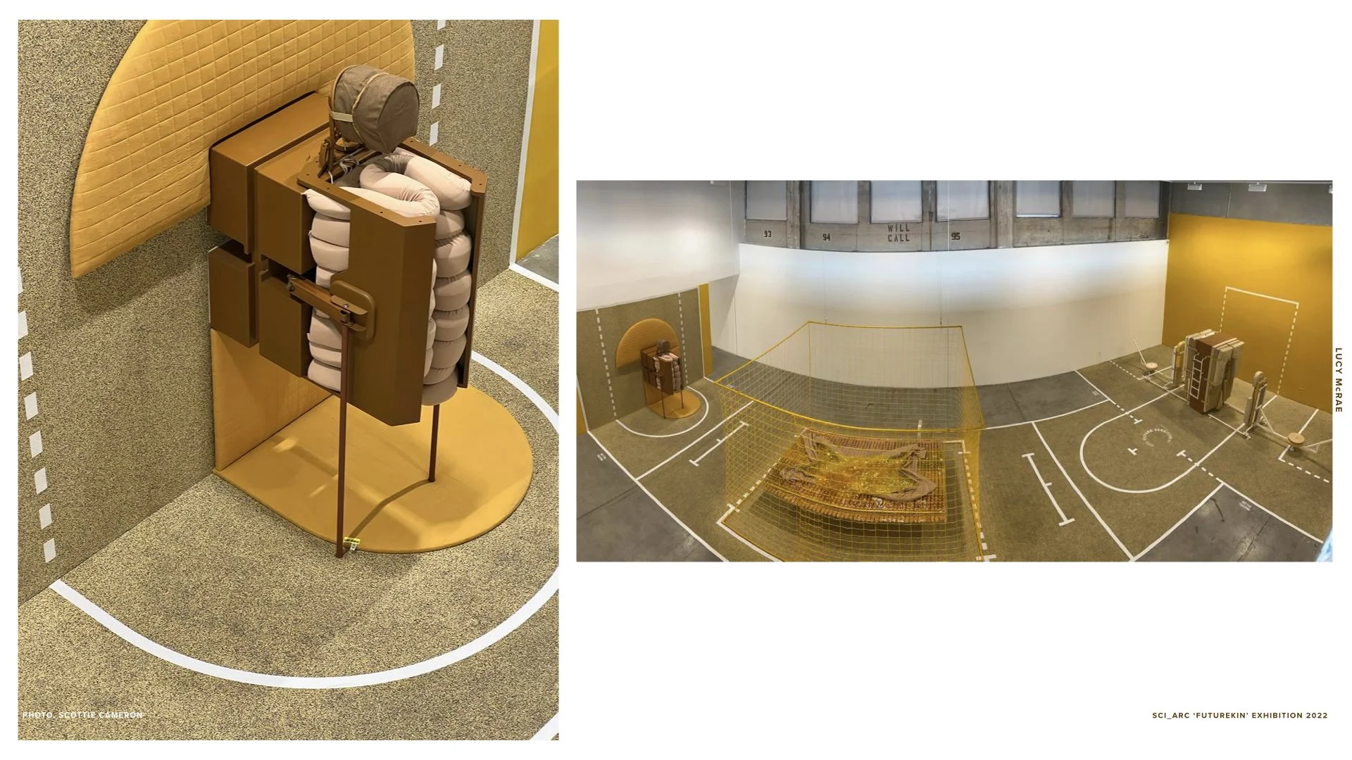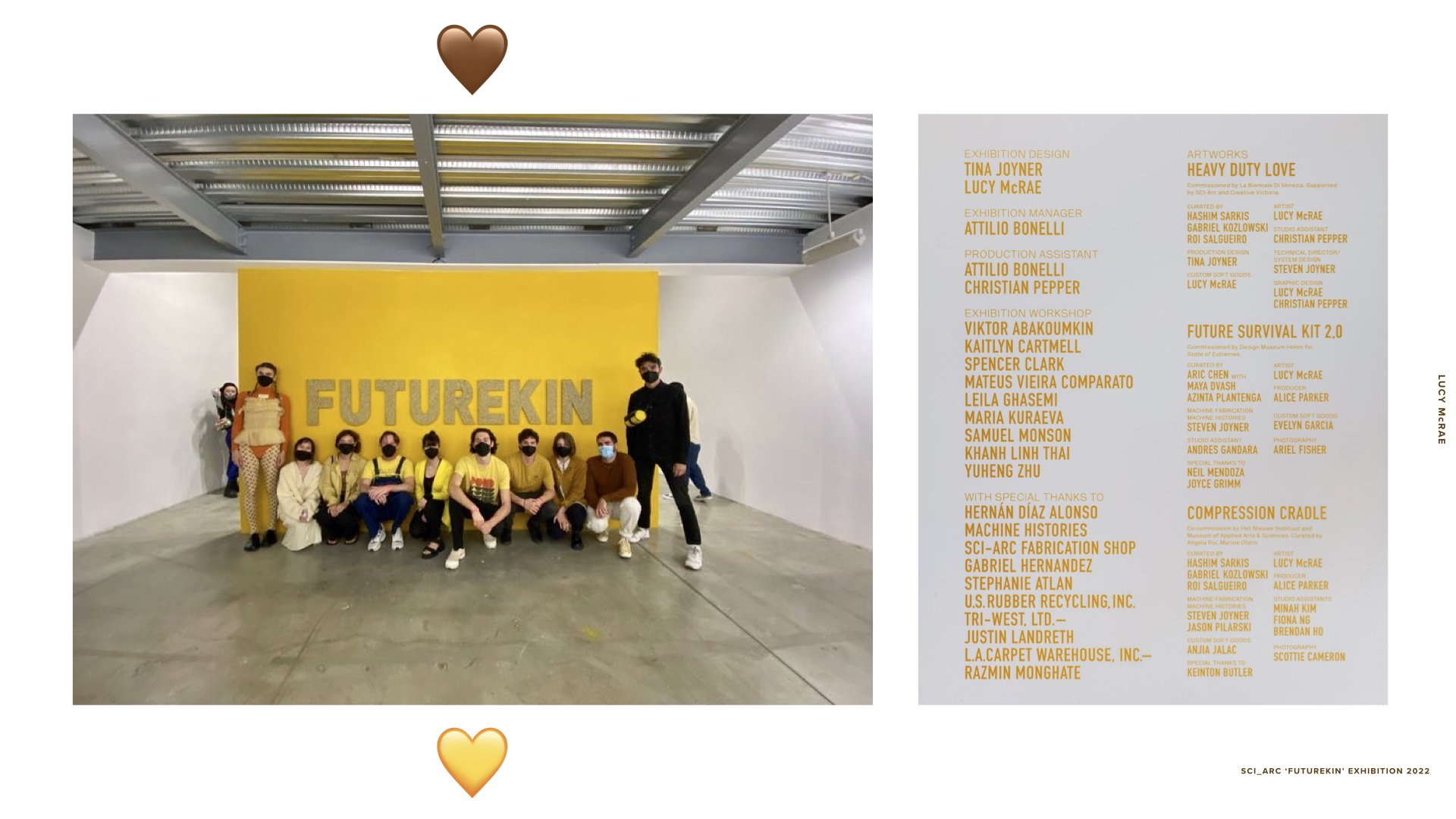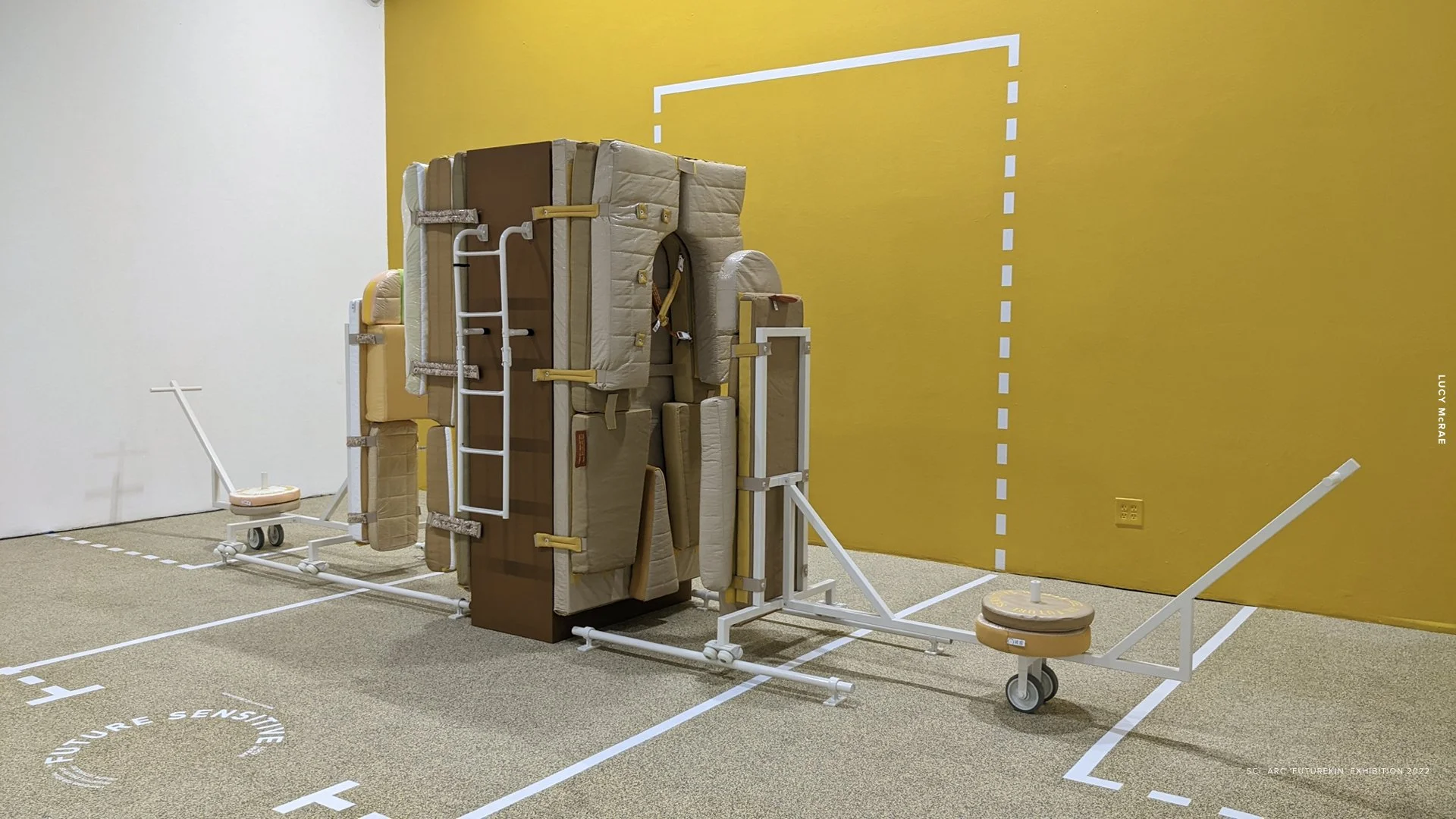 Heavy duty Love, Compression Carpet and Compression Cradle are mental health machines designed to compensate for a lack of human touch in early life. Sandwiching the body between layers of thick squishy stuff, these sponge-like machines build trust and connection, re-enforcing the protective embrace of a parent, gone lost, by virtue of lab grown origins. Fueling important dialogue on the complex realities of human connection and future intimacy, Lucy finds opportunities to highlight the evolution of care and nurture in a post CRISPR techno world –– forging new types of future, through science and story.